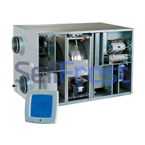 Для работы в низких температурах наружного воздуха, установка оснащена электрическими нагревателями. Если рекуперация тепла недостаточна, нагреватель автоматически включается и подогревает воздух, поступающий в помещение. Управление и автоматика встроены в саму установку и управляются сенсорным пультом.